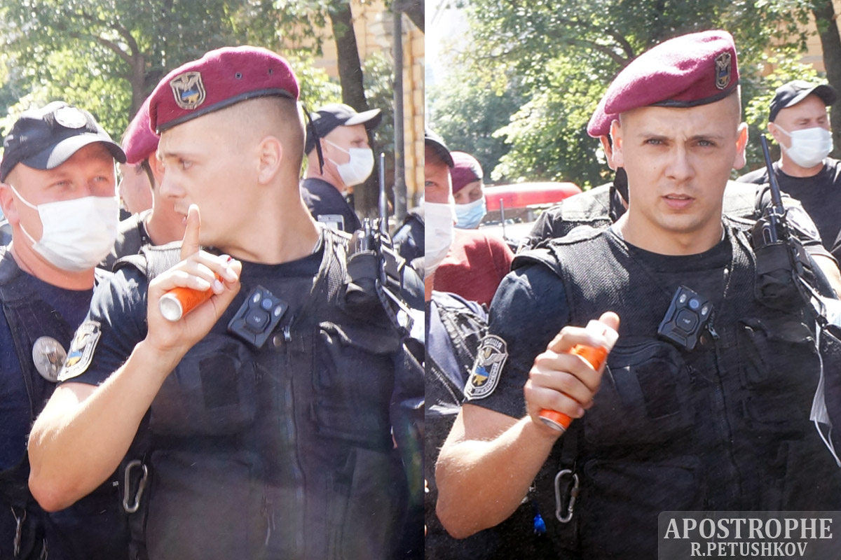 Law enforcer used tear gas against journalist of Apostrophe in Kyiv