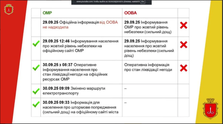 До контрагітації також можна зарахувати повідомлення “Труханов звинувачує ОДА у відсутності координації під час повені”. Тут є відповідні ознаки, оскільки основний акцент робиться на тому, що міська влада нібито діяла самостійно та ефективно під час нещодавньої повені в Одесі, коли за один вечір загинуло десять осіб, тоді як обласна адміністрація подається як пасивна й безініціативна. Тож такий підхід формує позитивний імідж міського голови та перекладає відповідальність за кризу на обласну владу. Матеріал використовує пряму мову мера та його заступника без балансу думок – у тексті відсутня позиція Одеської ОВА чи ДСНС, що робить новину однобічною та створює враження керованого інформаційного меседжу. Візуальні й емоційні елементи, такі як згадка про “зелені галочки” міськради та “червоні хрестики” військової адміністрації, підсилюють контраст між “ефективною” міською владою і “бездіяльною” ОВА, підкріплюючи образ мера як єдиного дієвого керівника під час кризи, що є характерною ознакою контрагітаційного матеріалу.