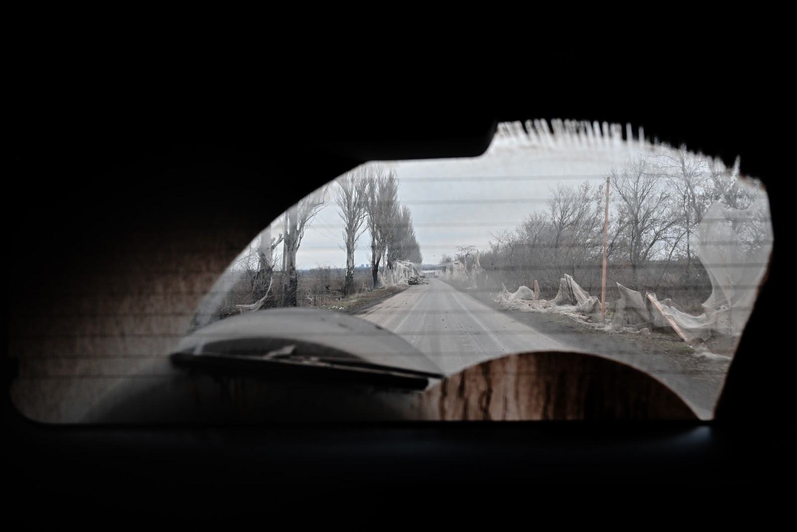 Того разу ми зупинилися під сітками, щоб сфотографувати нещасну тваринку — пташку, яка загинула, застрягши у плетінні. На вулиці було морозно та дуже вітряно, тому ми довго не крутилися на вулиці. Коли сіли в автівку, на екрані детектора побачили перехоплене зображення з ворожого дрона. Він летів над трасою, вкритою сіткою, та шукав мішень для атаки. Можливо, ми ледь не стали ціллю для російського оператора.