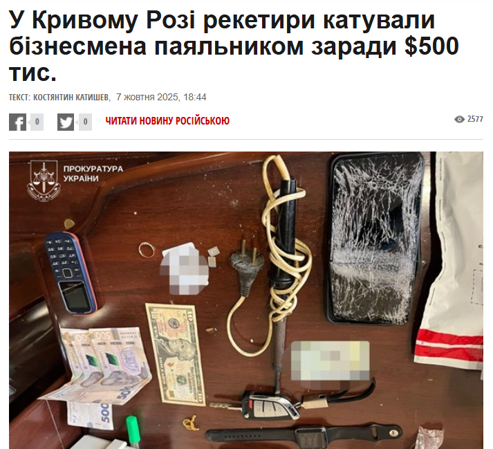 - У Кривому Розі рекетири катували бізнесмена паяльником заради $500 тис. (Корреспондент)