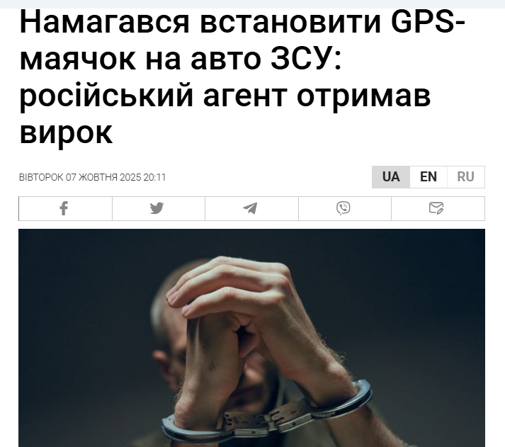 - Намагається встановити GPS-маячок на авто ЗСУ: російський агент отримав вирок (РБК Україна)