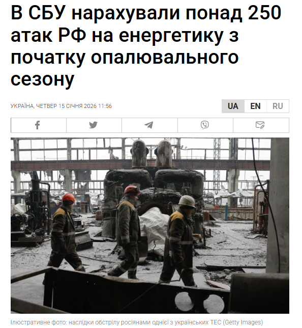 - В СБУ нарахували понад 250 атак РФ на енергетику з початку опалювального сезону (РБК-Україна)
