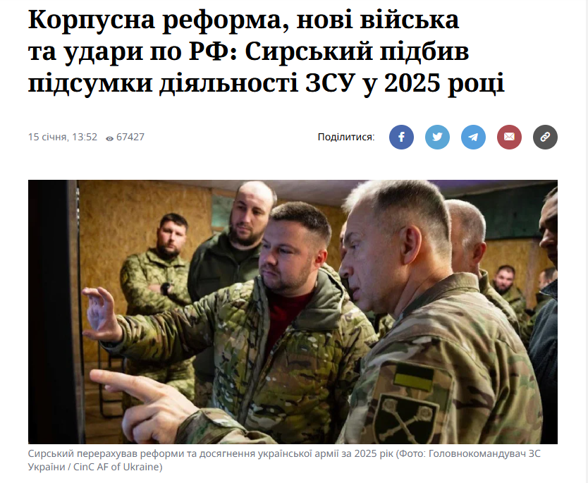 - Корпусна реформа, нові війська та удари по РФ: Сирський підбив підсумки діяльності ЗСУ у 2025 році (NV)