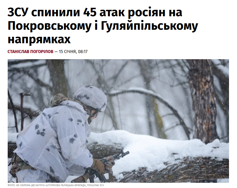 - ЗСУ спинили 45 атак росіян на Покровському і Гуляйпільському напрямках (Українська правда)