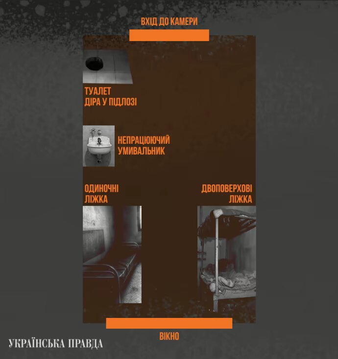 Питної води не було – лише з-під крана. Ця вода була зеленуватого відтінку і пахла рибою. Мила в камері не було, лише невелика ганчірка, якою ув’язнені мили посуд.