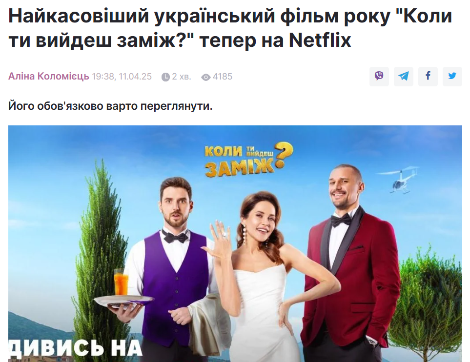 Культура. У матеріалах, присвячених виходу на стрімінговій платформі українського фільму “Коли ти вийдеш заміж?”, на сайтах УНІАН, “РБК-Україна” та “Телеграф” новина про фільм завершується згадкою про Favbet Foundation. Хоча сам фонд нібито виступає меценатом, відсутнє маркування та немає вказівки на зв’язок з азартними іграми. Для глядача це видається позитивною соціальною активністю, хоча функціонально це просування бренду через культурний контент.