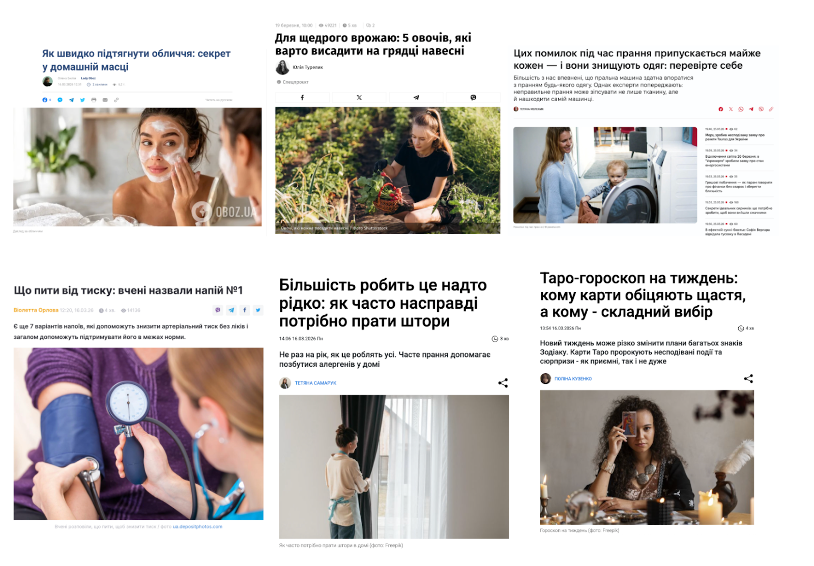 До прикладу, в матеріалі про милозвучні, найкрасивіші та пестливі імена, цей матеріал проілютрострований колажем з двох жінок, хоча в самому тексті також згадувалися кілька чоловічих імен,