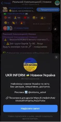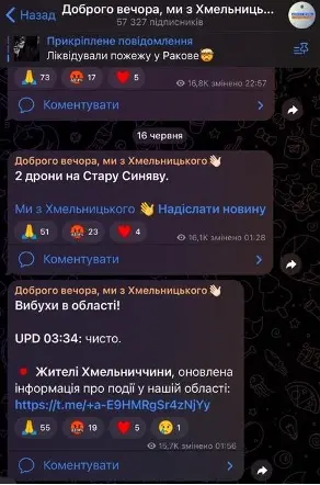 Загалом можна зробити висновки, що “Реальний Хмельницький” постить інформацію про мережеві канали, які входять до однієї мережі телеграм-каналів, а маніпуляції з контентом під час обстрілів не використовуються для набивання підписників.