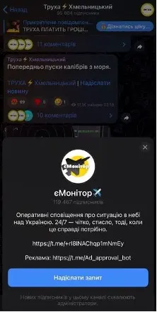 Допис із закликом швидко підписуватися на канал “єМонітор”. Скрин: “Труха Хмельницький”