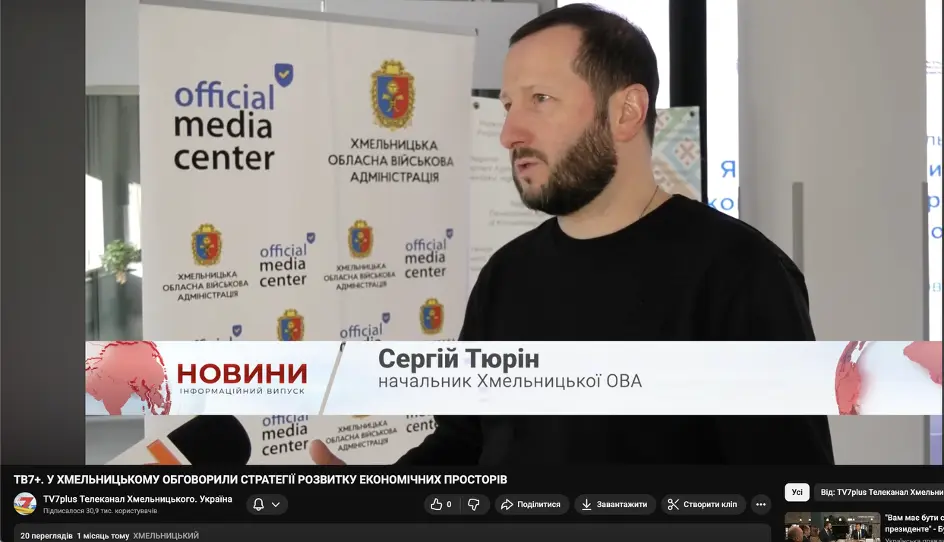 Сюжет телеканалу ТВ7+ про обговорення стратегії розвитку економічних просторів. Скриншот: ютуб-канал ТВ7+