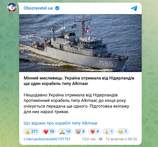 Скриншот ІМІ з телеграм-каналу Oboz.ua