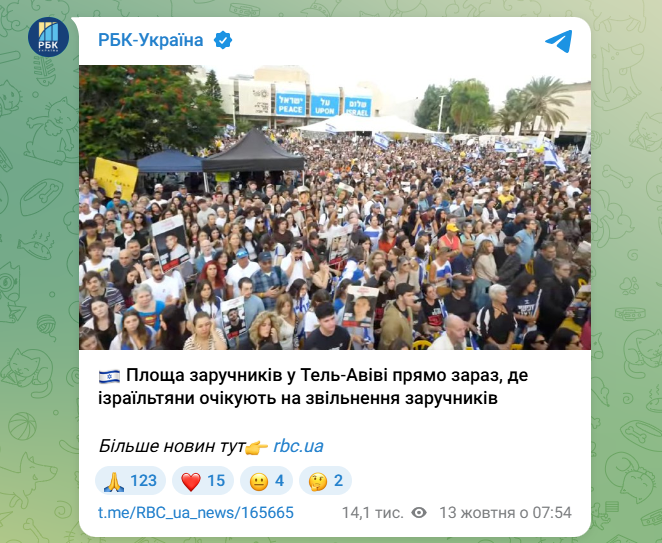 Скриншот ІМІ з телеграм-каналу “РБК-Україна”