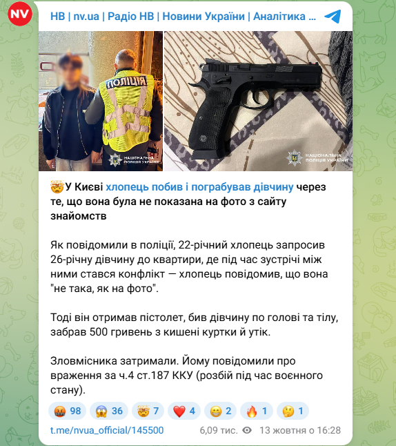 Крім того, сюди ж зараховано повідомлення на кримінальну тематику, списані з пресрелізів правоохоронних органів. Як це часто буває і в новинних стрічках на сайтах, коли риторика силовиків поширюється в медіа, виникає порушення принципу презумпції невинуватості. Тобто публікації називають винними в злочинах осіб, щодо яких суд ще не ухвалював вироку. Але якщо в новинах на сайтах десь у текстах ще можна побачити, що йдеться лише про підозри та версії слідства, то в постах у телеграм-каналах через їхній скорочений формат ці “вироки” без суду видаються ще більш брутальними та безапеляційними. А коли мова про порушення принципу презумпції невинуватості, йдеться вже не тільки про невідповідність журналістським стандартам, тут уже можна говорити й про нехтування законодавчими нормами.