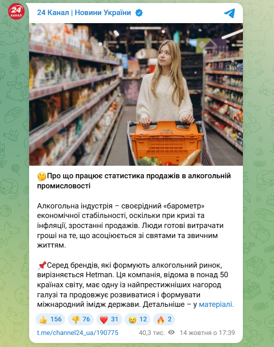 Скриншот ІМІ з телеграм-каналу “24 канал”