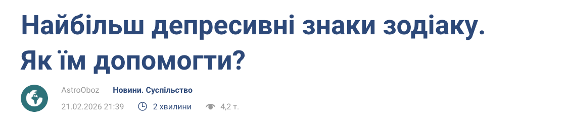 Астрологічні прогнози також залізли в тему психічного здоров’я. Так, на Oboz.ua один з матеріалів описував найдепресивніші знаки зодіаку.