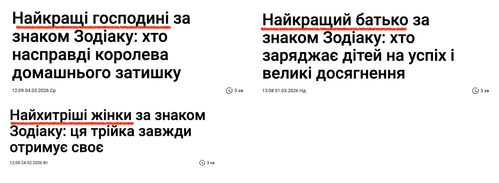 Не менш важливий тригер в усіх астрологічних прогнозах – емоційна лексика. Такі заголовки створюють ефект терміновості, хоча тексти ніколи не містять фактів чи конкретики, а лише власні відчуття езотериків.