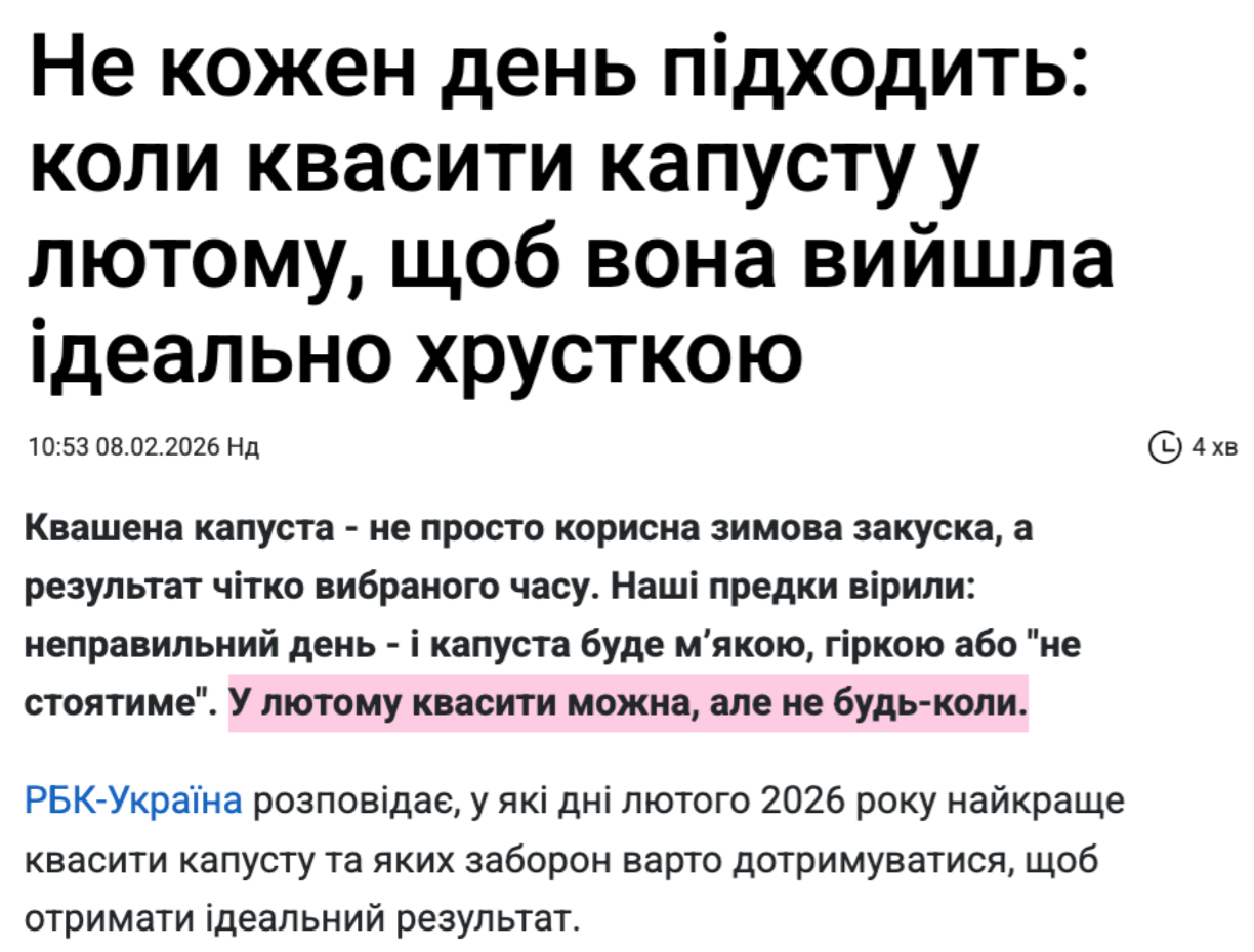 Особливої уваги заслуговує перелік джерел, на які спиралася редакція під час підготовки матеріалу: “Астрологічний календар садівника-городника на 2026 рік та технологічні карти харчової промисловості щодо ферментації овочів”. Якщо капуста не вдасться, то завжди можна звинуватити зорі.