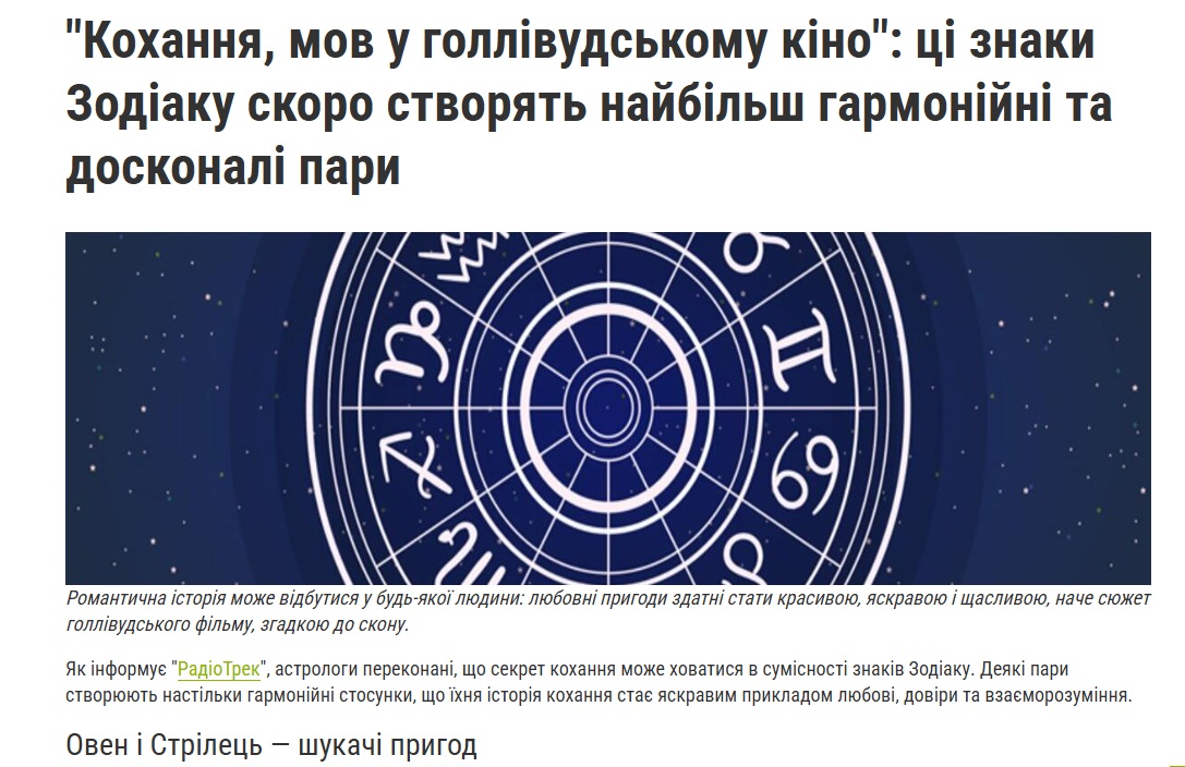 У решти сайтів новин, пов’язаних з астрологією, за два місяці не було. Для чистоти експерименту ми глянули через пошук, чи були раніше. Якщо коротко, то так.