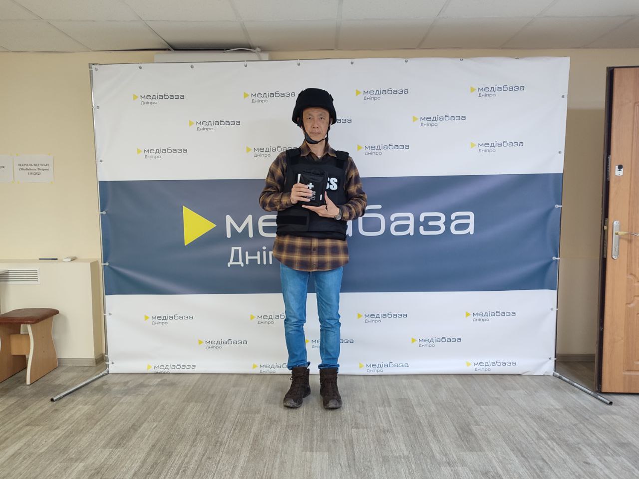 Журналісти отримали захисне обладнання в Медіабазі Дніпро (17 листопада російська дронова атака знищила будівлю, в якій вона містилася). Фото: Медіабаза Дніпро