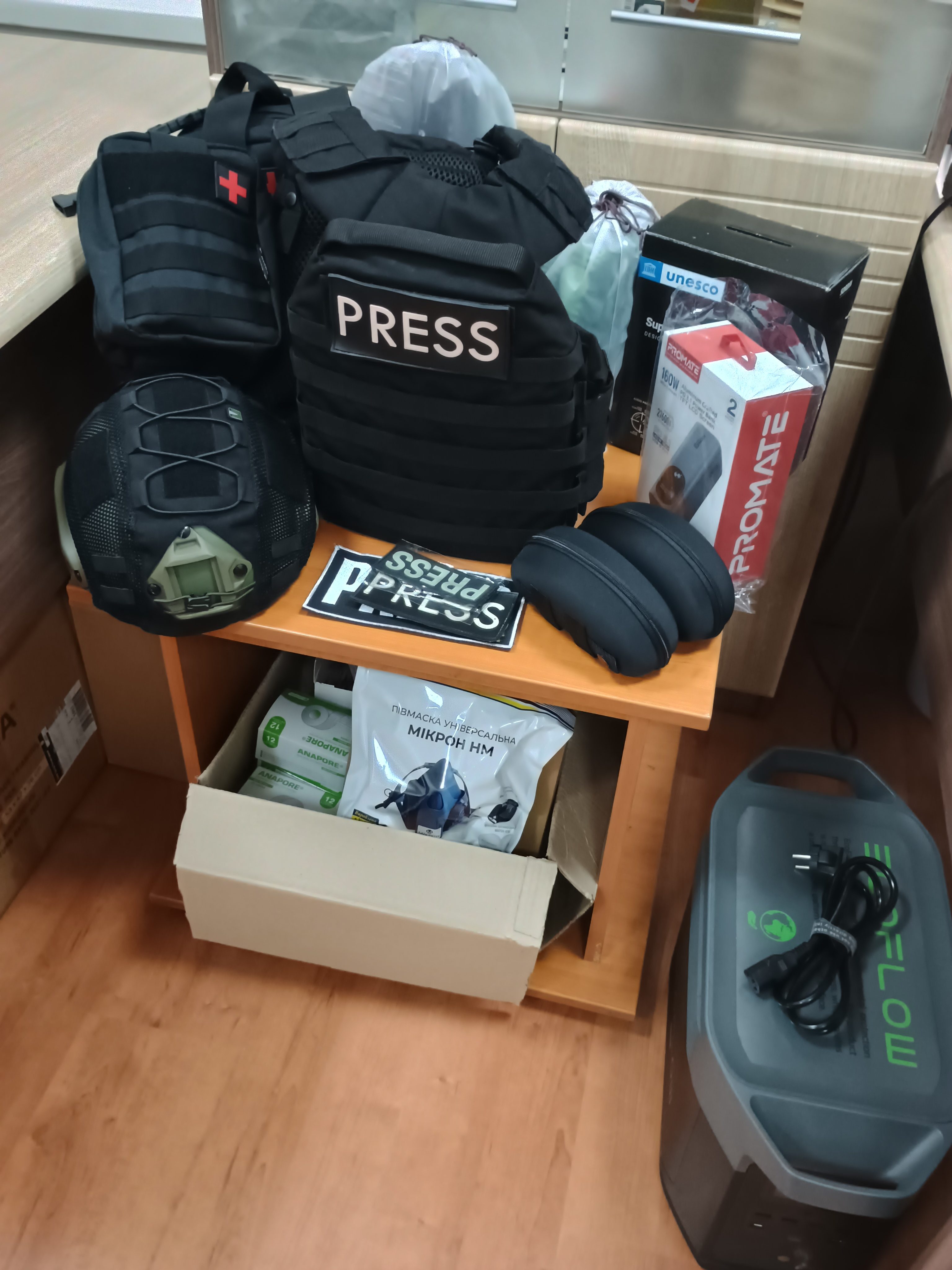 Зараз ми вже не завозимо обладнання з-за кордону, а купуємо українське. Наприклад, бронежилети й шоломи для журналістів (зокрема, жіночі комплекти) ми закупили в магазині “Балістика”, завдяки фінансуванню від шведських “Репортерів без кордонів” та IMS.