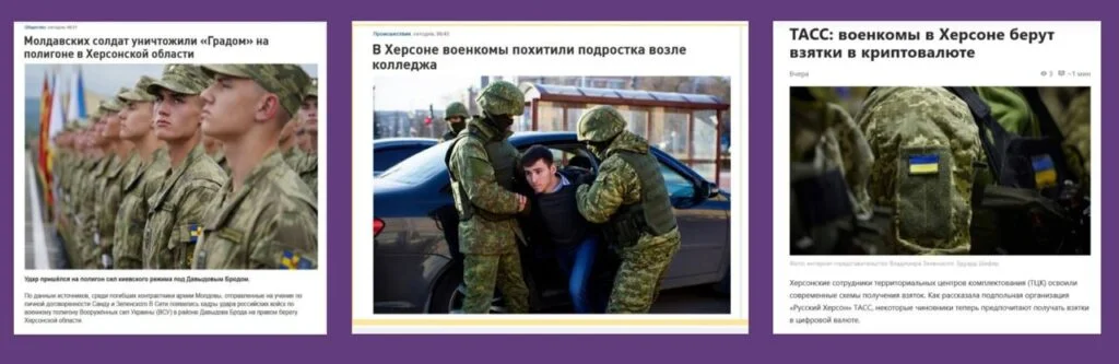 З останніх фейків росіян про військових, які розповсюджуються у російських медіа та телеграм каналах: “працівники ТЦК беруть хабарі у криптовалюті”, “викрадення студентів коледжів” (які не працюють) та “молдавських солдатів”, яких “знищили “Градом”.