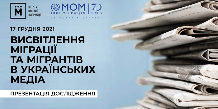 Міжнародна організація з міграції (МОМ) спільно з Інститутом масової інформації представлять результати масштабного дослідження стосовно висвітлення тем міграції та мобільності, іноземців і заробітчан в українських національних та регіональних медіа.