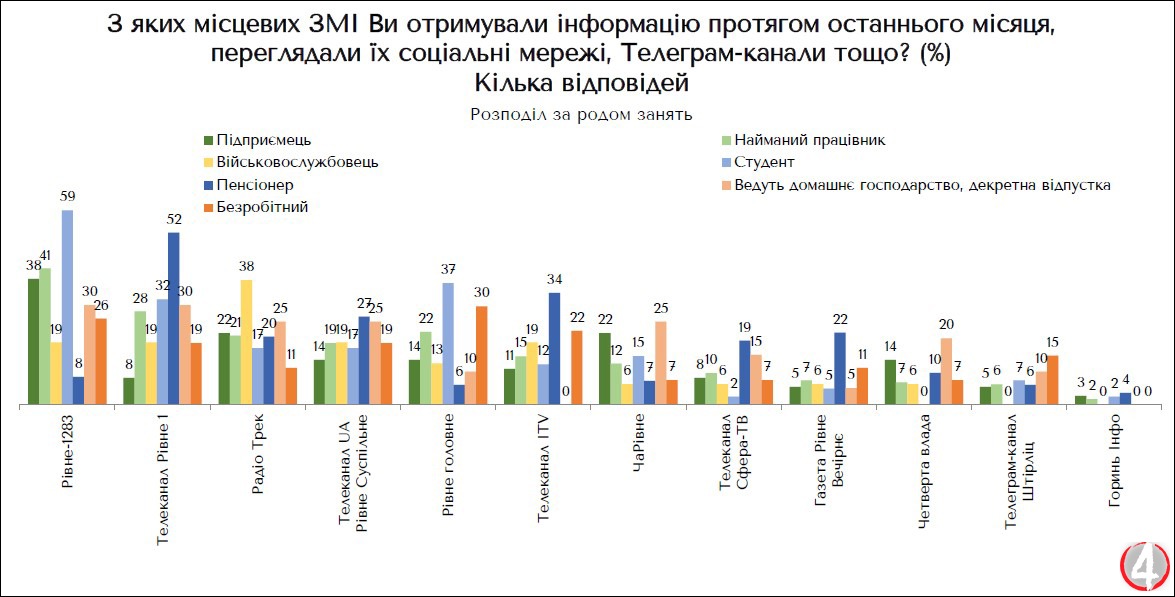 Також дослідження показало, що наймолодші глядачі – в телеграм- та інстаграм-пабліку “Рівне 1283”, а найстарші – у телеканалу “Рівне 1”.