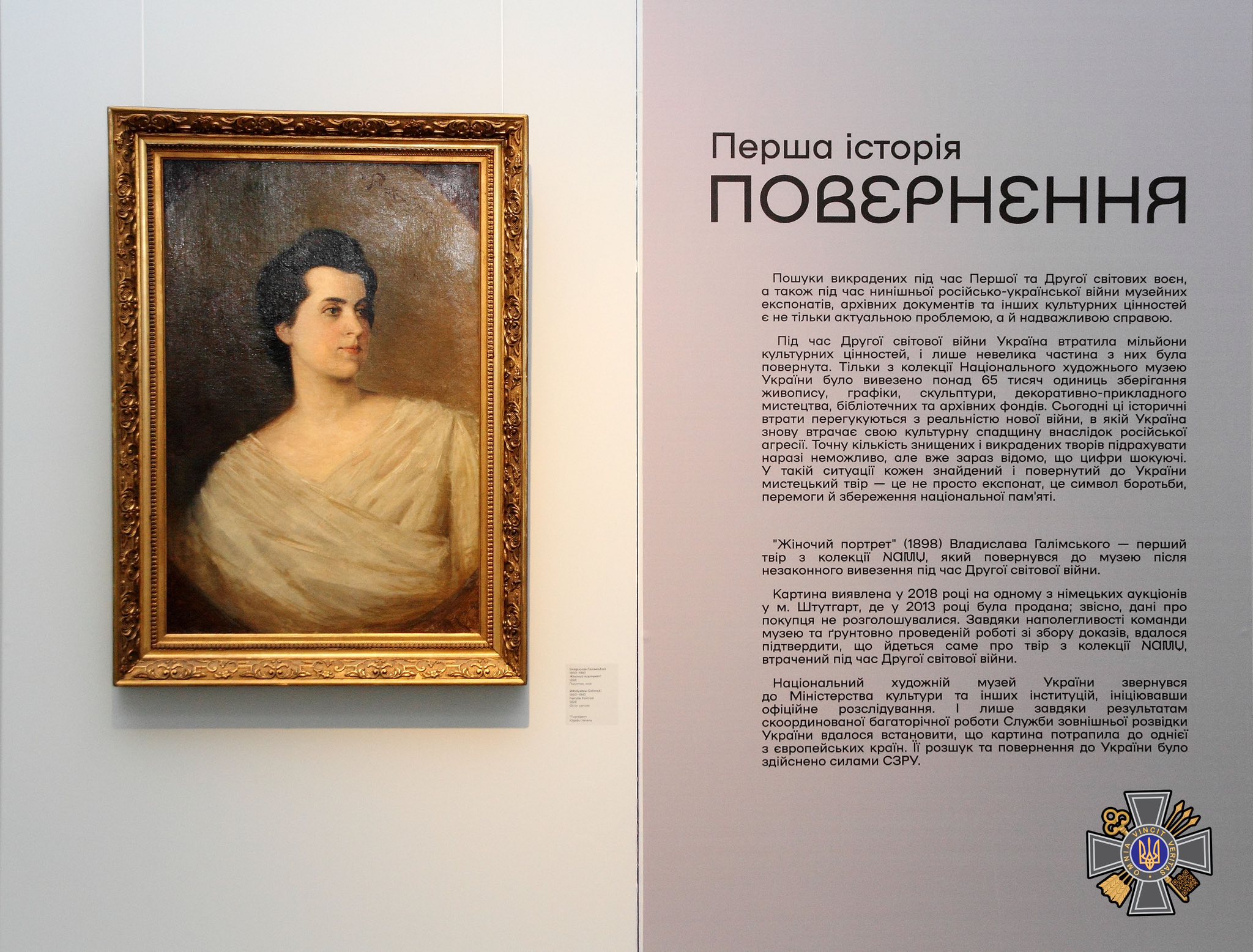 До Національного художнього музею України у Києві 15 травня повернули незаконно вивезену нацистами під час Другої світової війни картину “Жіночий портрет” Владислава Галімського (1898).