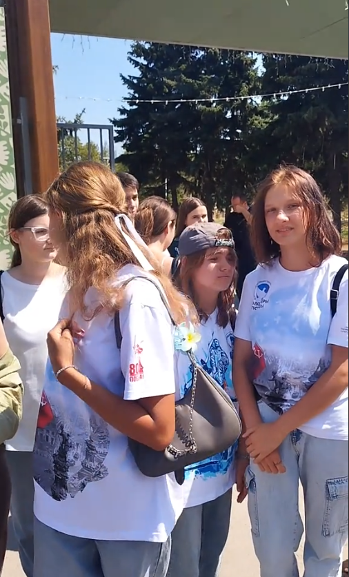 Також вони ходили до парку Щорса у Луганську та взяли участь у традиційному для пропагандистів заходів – покладанні квітів до пам’ятника “Загиблим дітям Луганщини”, який встановили окупанти.