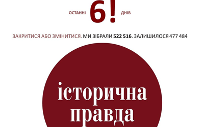 До закінчення кампанії зі збору коштів для існування інтернет-проекту про історію в Україні “Історична правда” залишилося шість днів. Про це повідомляється на сторінці “Історичної правди” у Фейсбуці.