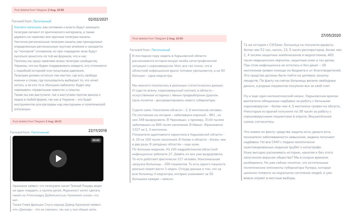 Видалені репости каналу “Легитимный”