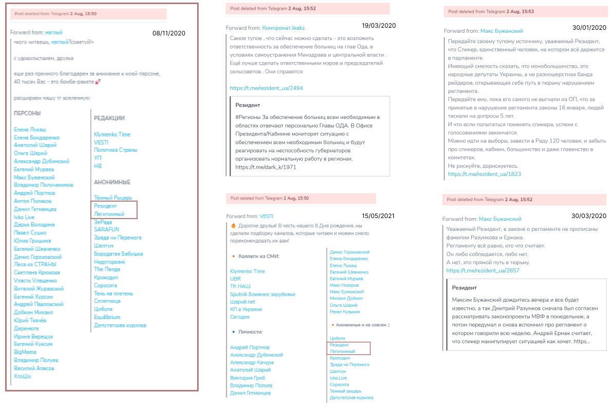 Видалені репости каналу “Резидент”