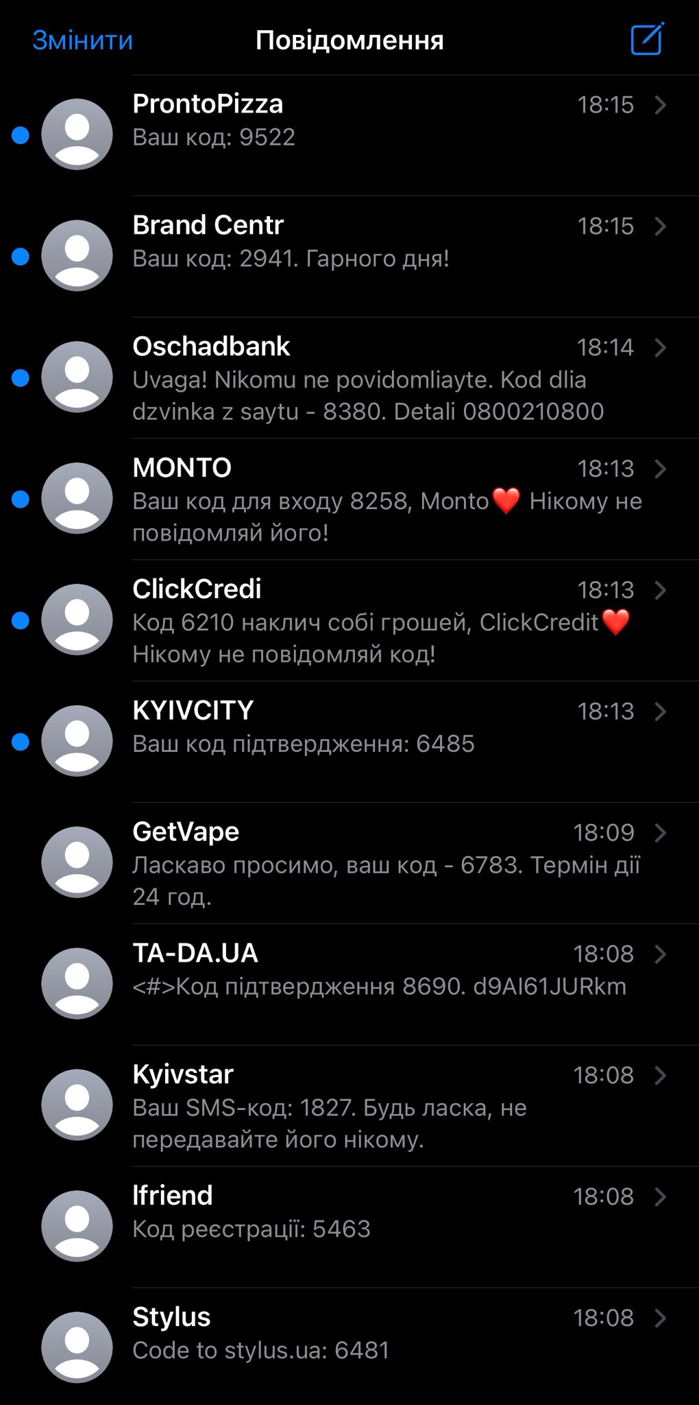Важливо розуміти: потік SMS із кодами автентифікації жодним чином не свідчить про те, що ваші облікові записи зламано. Зловмисники просто вводять ваш номер телефону в мобільному застосунку чи на сайті, а сервіс надсилає вам код для входу, та повторюють цей процес раз за разом для багатьох сервісів ‒ у результаті ви отримуєте потік SMS із кодами.