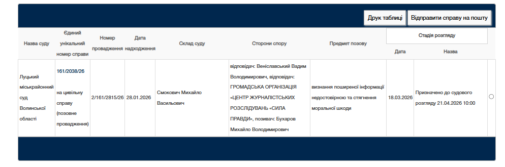 Розгляд справи призначено на 21 квітня 2026 року. Інтереси “Сили правди” представлятимуть медіаюристи Інституту розвитку регіональної преси (ІРРП).