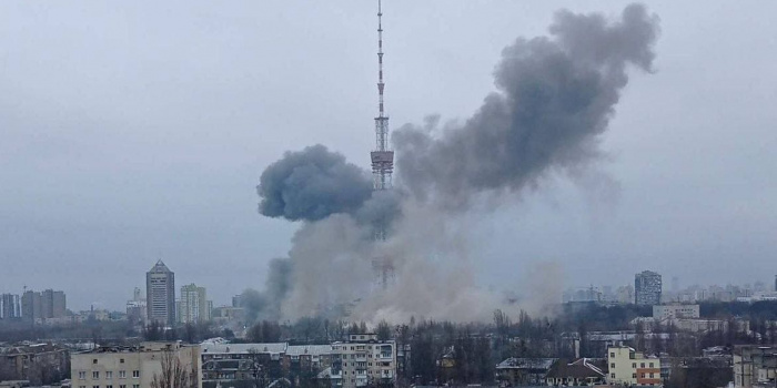 Київська телевежа, 1 березня 2022 рік. Фото: Суспільне