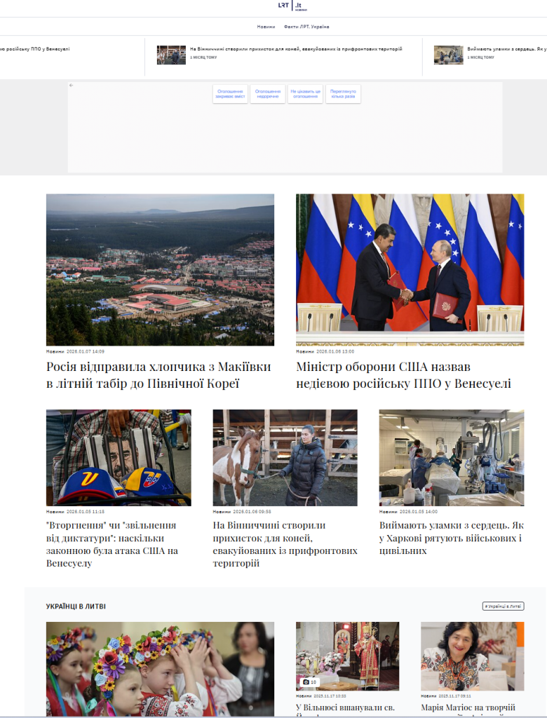 Суспільний мовник Литви LRT припинив роботу українськомовної версії свого сайту через зменшення аудиторії цього розділу.
