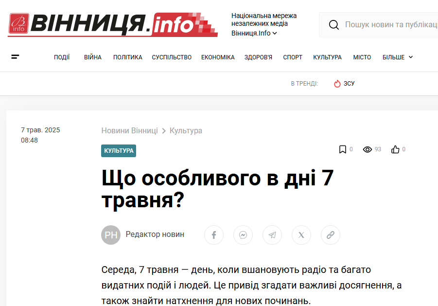 Сьогодні, 7 травня, низка українських медіа та навіть офіційних установ привітала українців з так званим Днем радіо. Проте ця дата не має жодного стосунку до української традиції, повідомив медіаексперт, секретар наглядової ради Суспільного Вадим Міський на своїй фейсбук-сторінці.