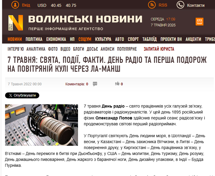 Міський зауважує: 7 травня – це радянський штучно створений “день”, присвячений фізичному експерименту російського інженера Олександра Попова в 1895 році.