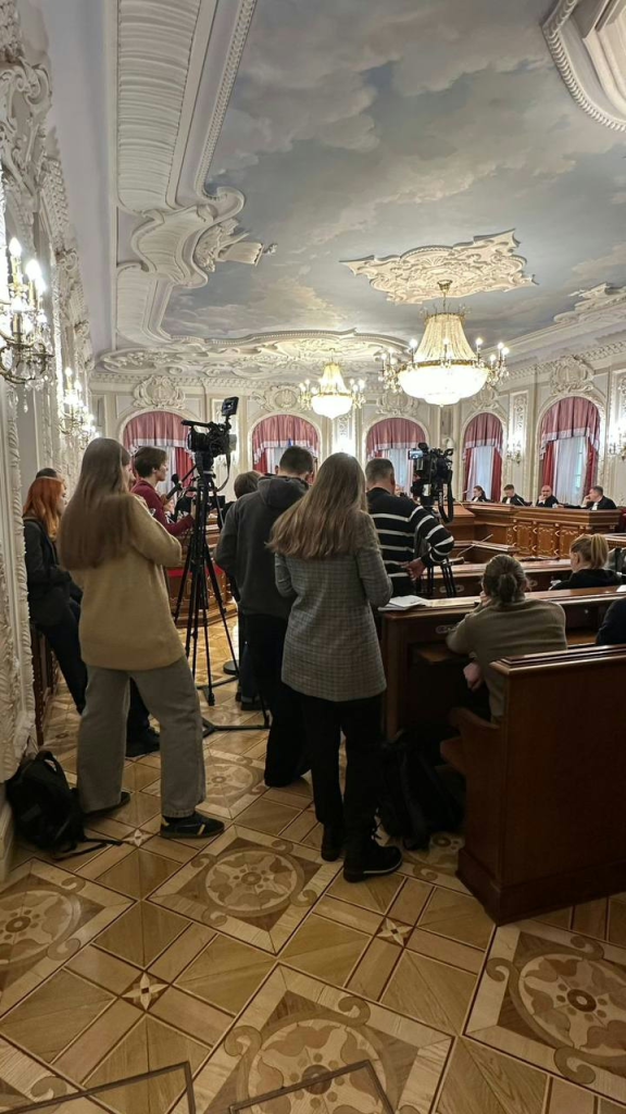 На засідання не впустили й інших журналістів, активістів та навіть дипломатів ЄС. Про це написав співзасновник фундації DEJURE Михайло Жернаков на Facebook-сторінці. Також фундація DEJURE поділилася з журналістами фото із засідання, на якому видно порожні столи.
