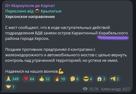 Як зазначає видання, зранку 15 жовтня одразу кілька інформаційних ресурсів повідомили про те, що “російські десантники висадилися в межах херсонського Острова”.