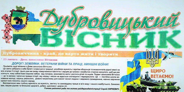 Голова Дубровицької райдержадміністрації (Рівненська область) Сергій Киркевич думатиме над звільненням головного редактора районної газети “Дубровицький вісник” Людмили Родіни, яка від його імені привітала у газеті чоловіків з 23 лютого – Днем захисника Вітчизни.
