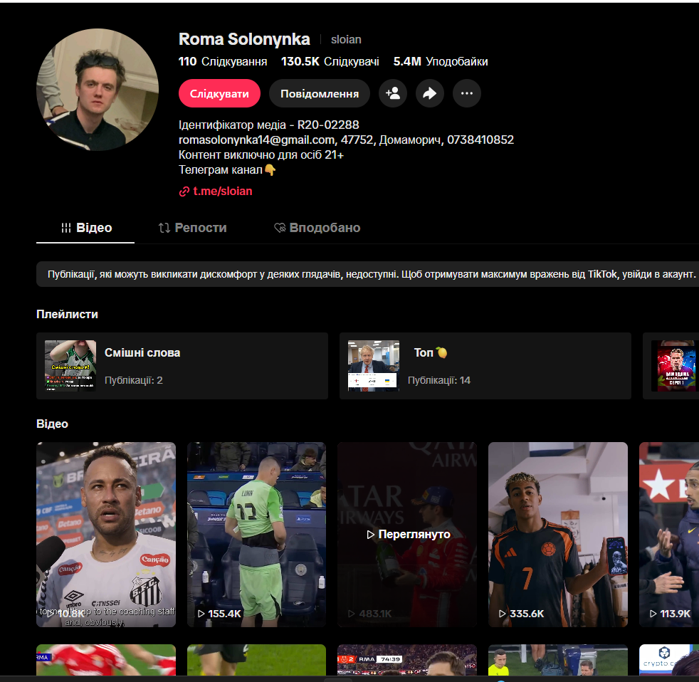 Національна рада з питань телебачення і радіомовлення зареєструвала в березні на Тернопільщині як аудіовізуальні медіа на замовлення з приміткою “нелінійний медіасервіс” тікток- і інстаграм-сторінки “Roma Solonynka” зі скетчами.