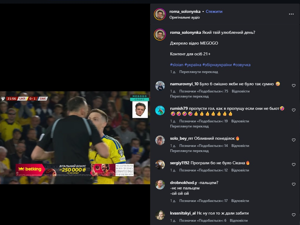 Обидва медіа містять ролики на футбольну тематику з пародійною озвучкою. Кожен з них має вказане джерело, звідки взяли уривки. У деяких роликах трапляється реклама казино, зазначає представниця ІМІ, але вона маркована.