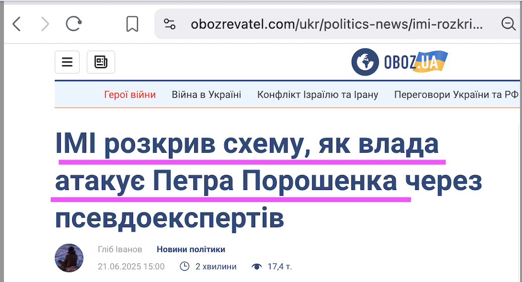 Аналітики ІМІ зафіксували, що після публікації дослідження “Експерти кажуть”. Хто і що коментує в телеграм-каналах” у медіа з’явилася низка публікацій з посиланням на нього, але в заголовках таких текстів містилася навмисна дезінформація на користь Порошенка. Зокрема, такі новини опублікували 21 червня сайти “Волинь”, UA News, “Пул Першого”, “5 канал”, “Високий замок”, “Прямий”, “Обозреватель”.