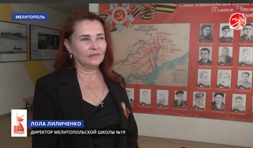 Російська директорка мелітопольської школи поширює серед українських дітей наративи російської пропаганди. Скриншот ІМІ із сюжету, розміщеного в окупаційному телеграм-каналі