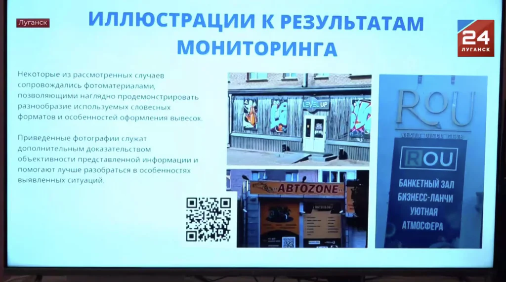 В окупаційній адміністрації планували показати лише частину вивісок-порушників, але в кадр пропагандистів потрапив QR-код, за яким на Яндекс-диску зберігалися кілька десятків фотографій вивісок. “Реальна газета” дослідила їх.