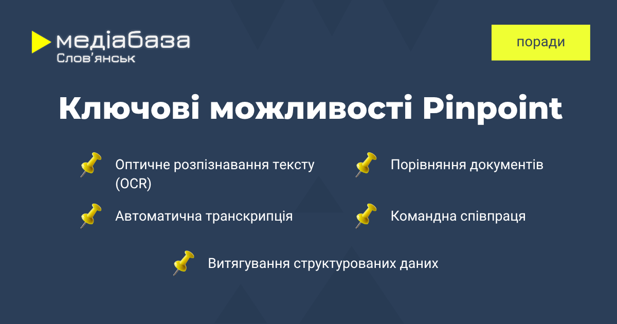 Pinpoint – це потужний інструмент Google, спеціально створений для журналістів, які мають опрацьовувати сотні неструктурованих файлів. Система приймає PDF, аудіо, відео та текстові файли, створюючи єдину базу для пошуку.