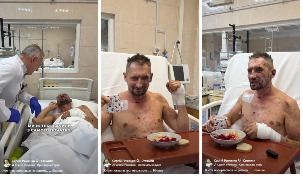 “Стан був дуже важкий – між життям і смертю. Але бувають випадки, коли дивуєшся: після таких поранень люди не лише виживають, а ще й одужують у доброму гуморі. Ти – один з них”, – сказав кореспондентові Сергій Риженко.