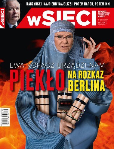 Прем'єр-міністр Польщі Єва Копач судиться з журналом wSieci, який на обкладинці зобразив її у вигляді ісламської терористки. Про це повідомляє Укрінформ з посиланням на РАР.