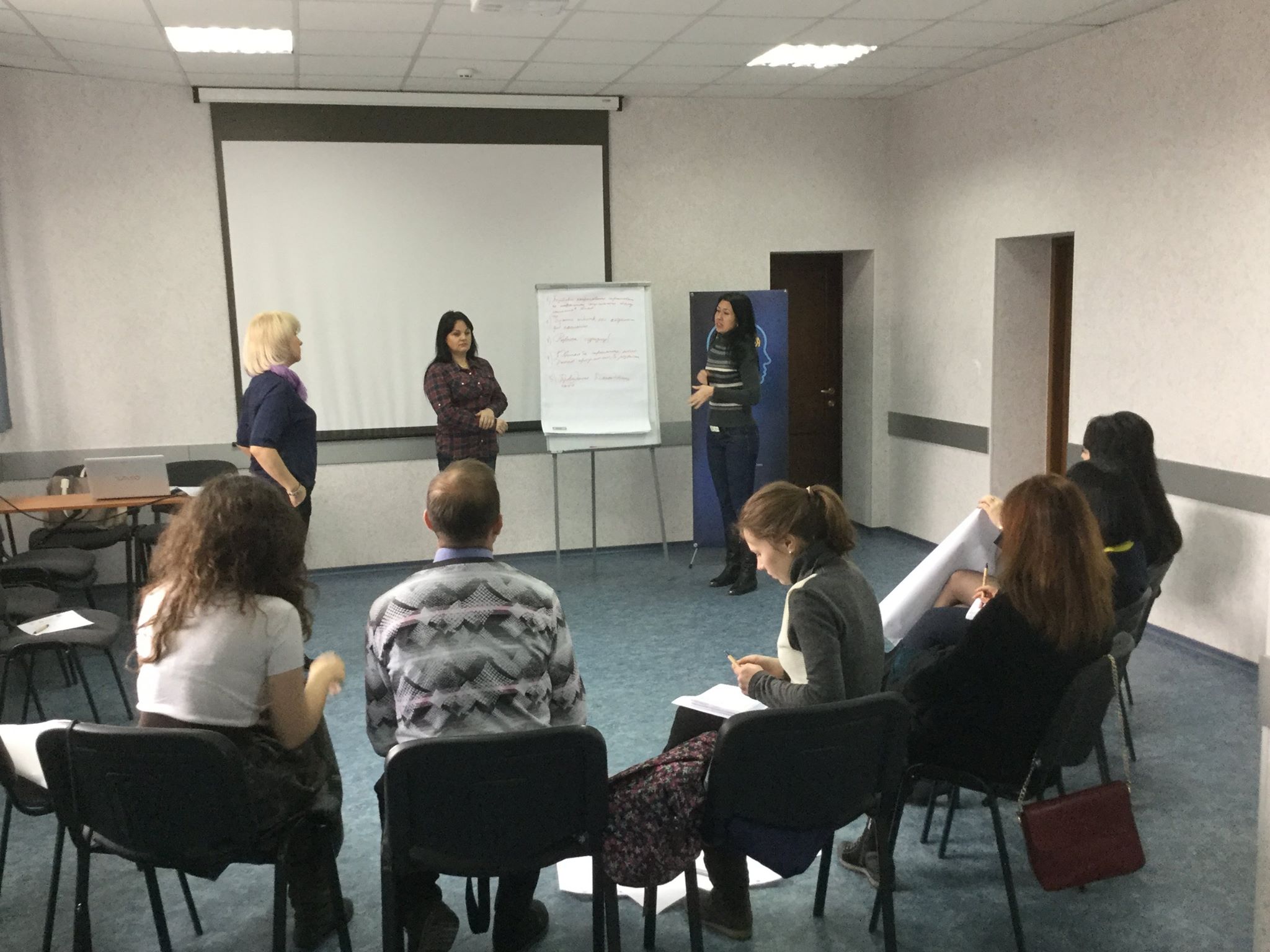 Спершу тренерка — експертка з комунікацій Зоя Казанжи — розповіла про про базові знання по взаємодії із ЗМІ: чого хочуть сучасні медіа; правила успішної комунікації; аудиторії, повідомлення, канали: що, кому, коли і яким чином комунікуємо.